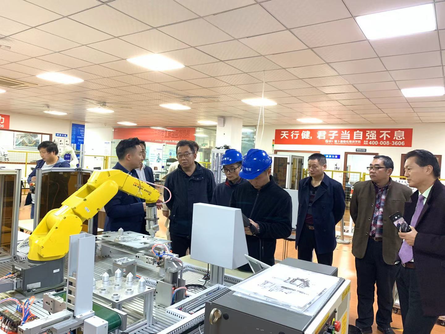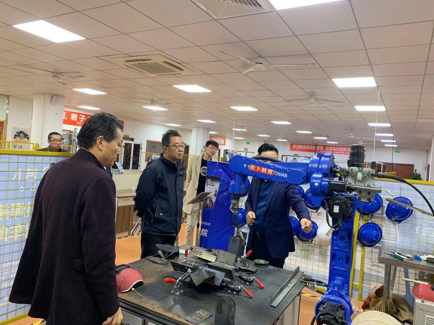 热烈欢迎盐城工学院杨军院长到校参观指导,我们若卜智能制造培训学院受到越来越多教育同行的关注与支持,盐城工学院杨军院长在若卜智能制造学院徐校长的陪同下进行考察参访