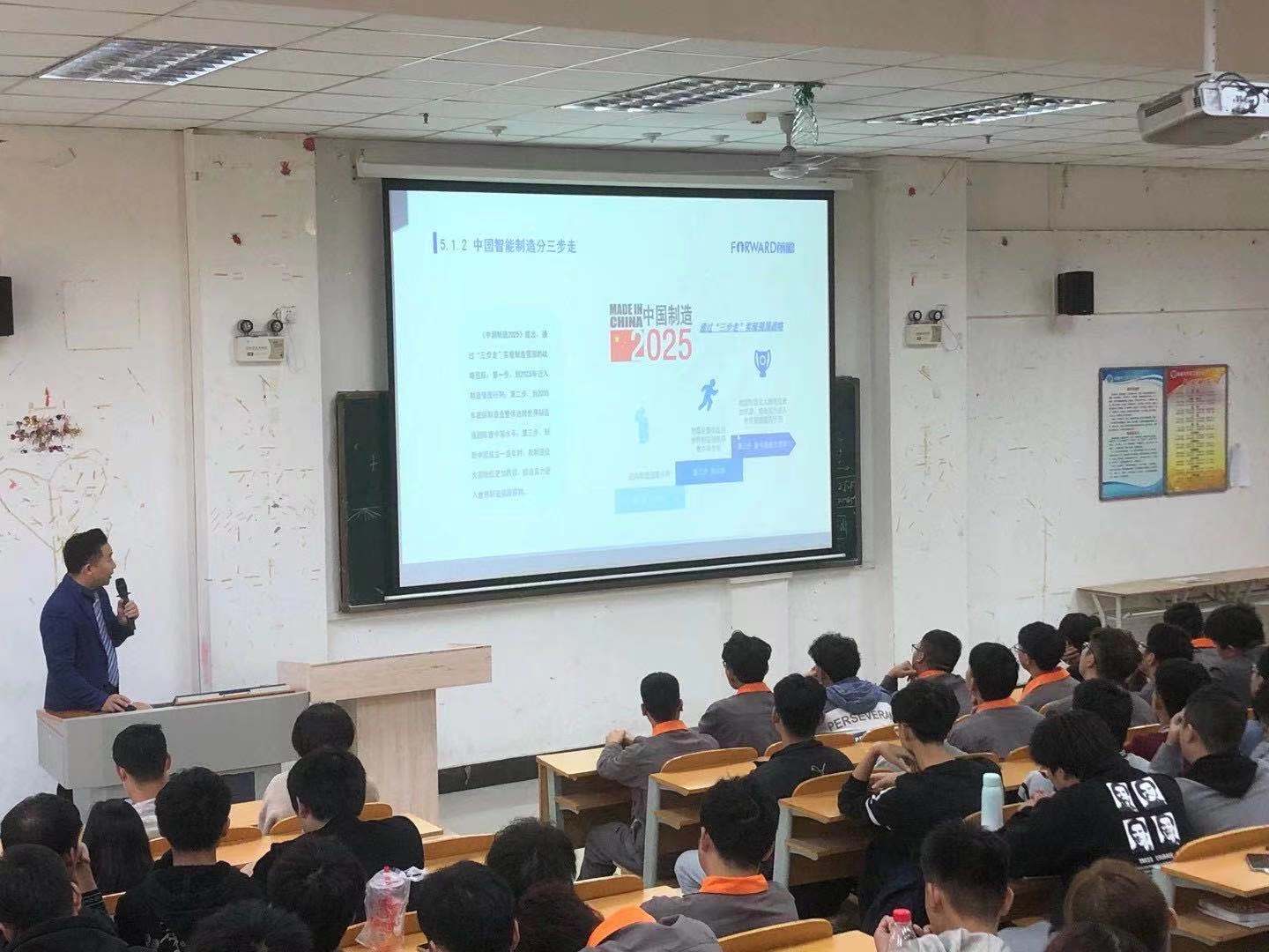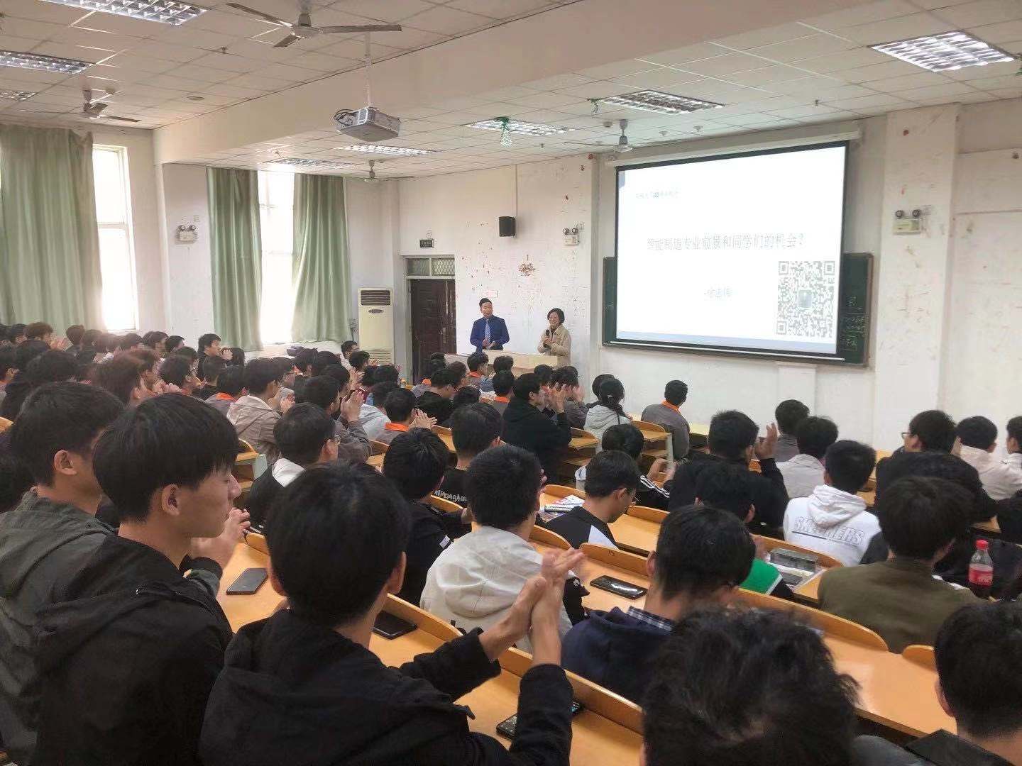 之后徐校长受开封大学宋校长和朱院长邀请给机电系同学做了《智能制造前景及同学们的机会》分享,希望他们在以后的学习中明确方向,毕业以后找到好工作,拥有好未来,为中国智能制造添砖加瓦。