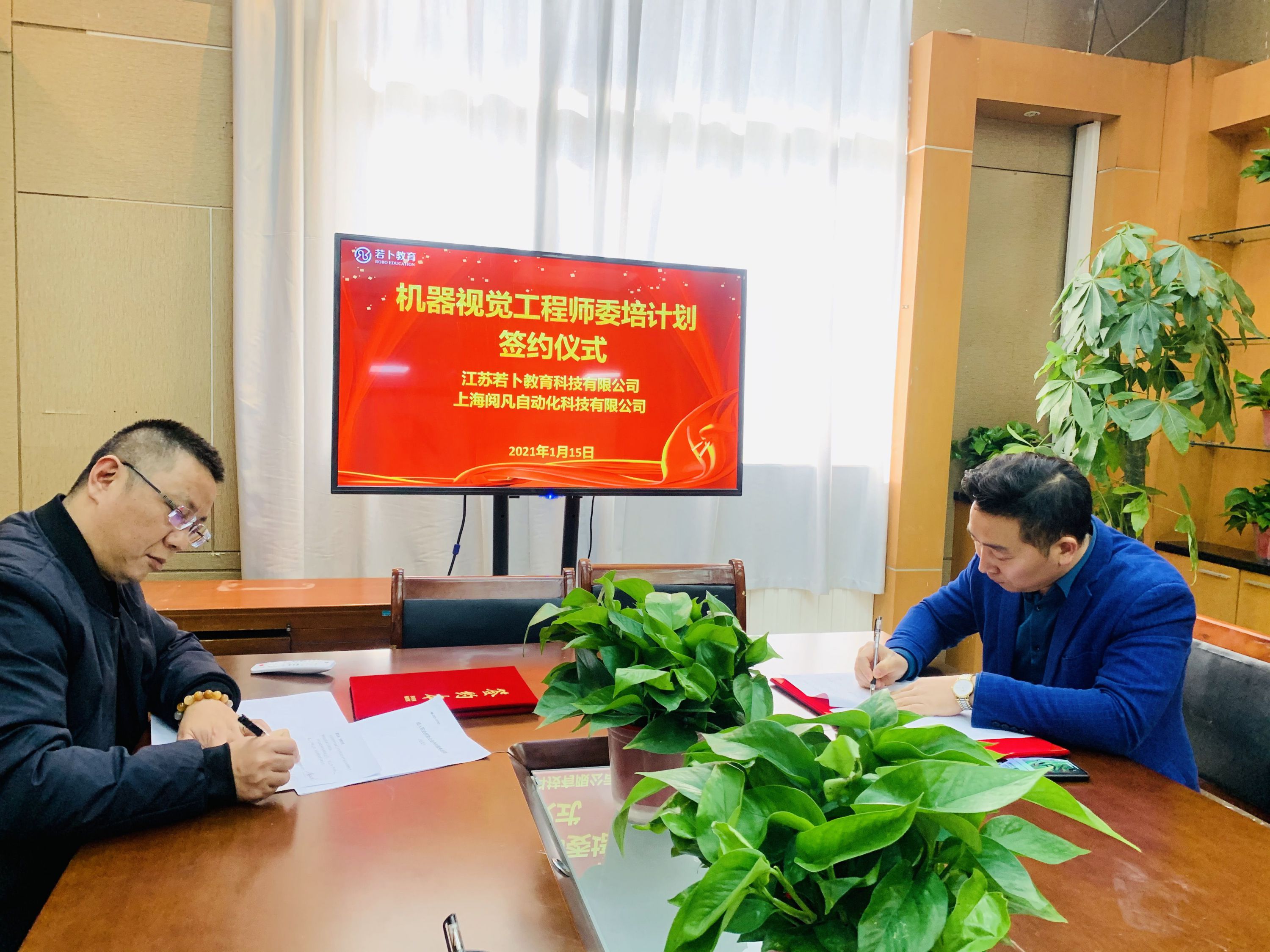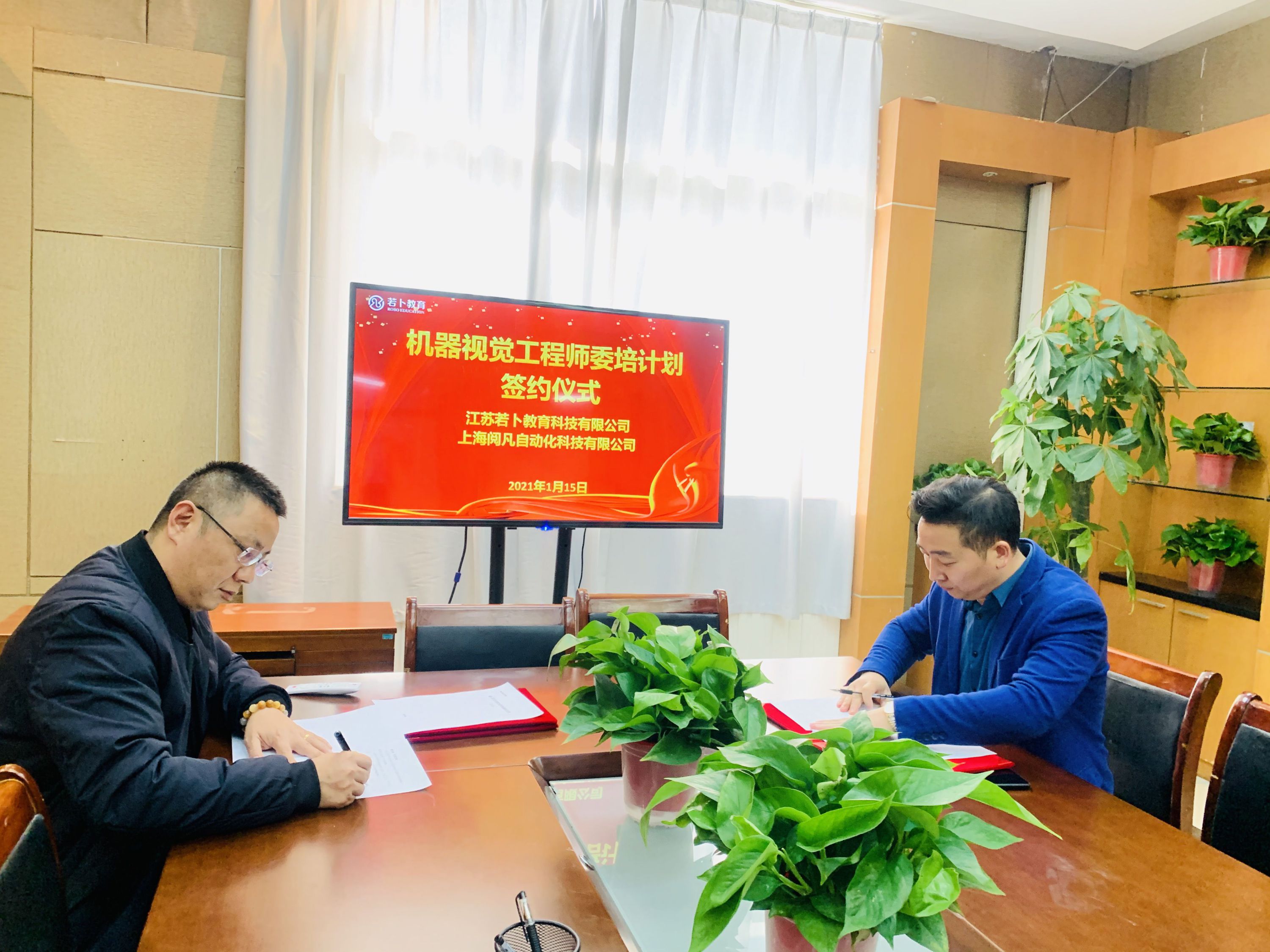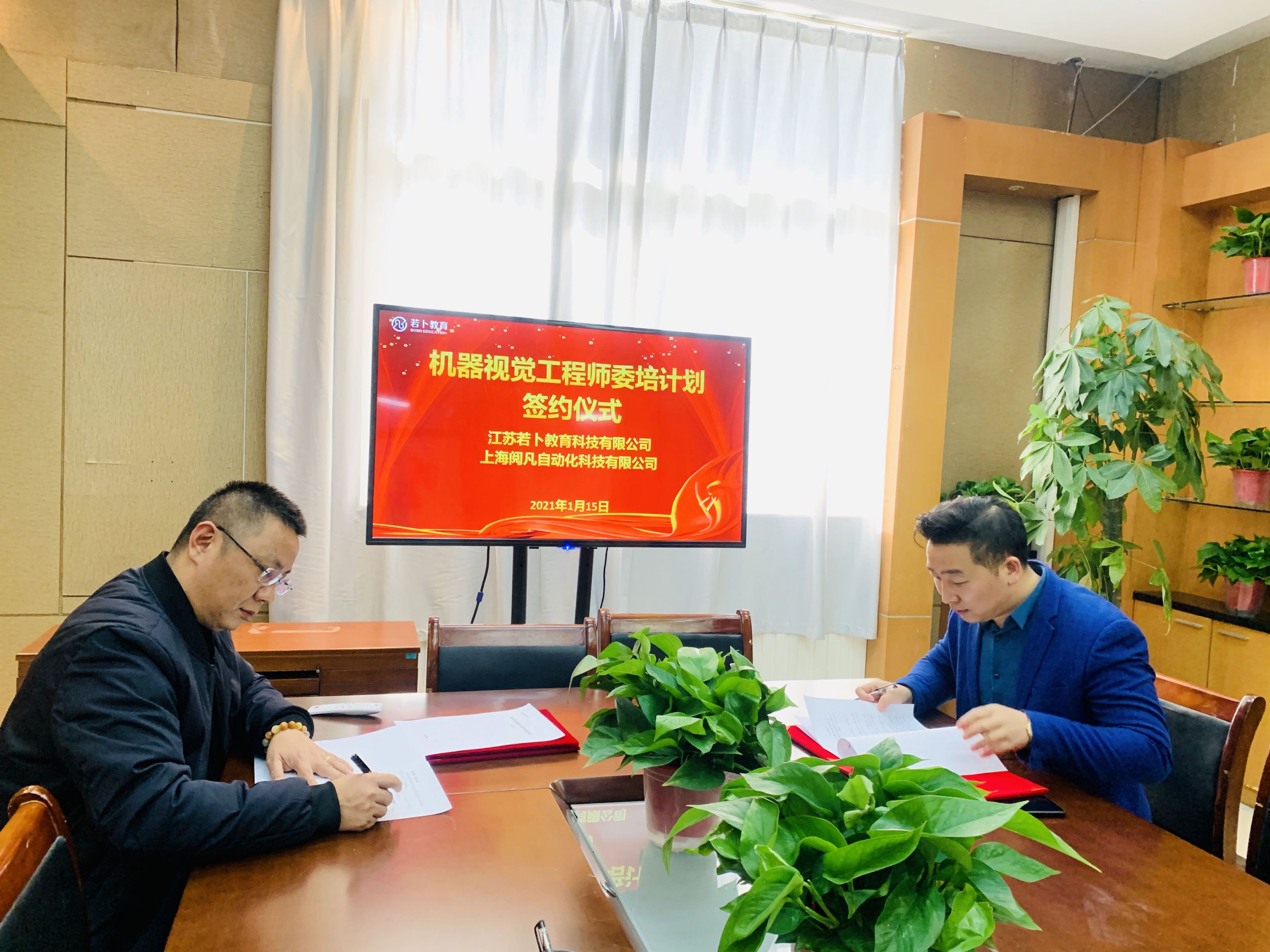 若卜智能制造学院与上海阅凡自动化科技有限公司签订了‘机器视觉工程师委培计划 ”,若卜教育负责人才培训,阅凡接收人才,这种模式下,学员入学前就签订了定向就业协议,这就保证学校、企业、学习目标的一致性,提高了教学质量,企业得到了有用人才,学员有了明确的学习和就业方向。