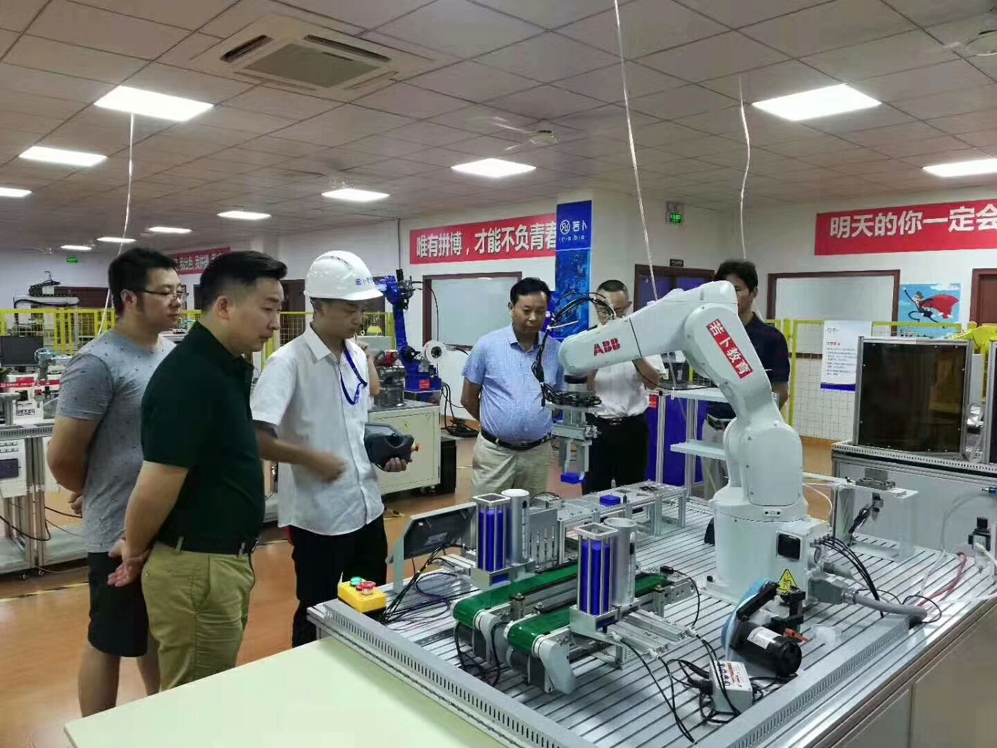 昆山三一重机小型挖机结构件生产车间繁忙的产线上,焊光闪烁,而工人却并不多。车间一排整齐的5个焊接机械手,能识别50多种铲斗规格,自行调整焊接距离和程序,焊接过程一气呵成,一天至少能焊接60台。在小挖机组装车间,机械手或者像车夫,或者像挑夫,拉着数吨重的挖机下盘,以前需用吊机、多人才能胜任的工作,现在都由机械手完成。
