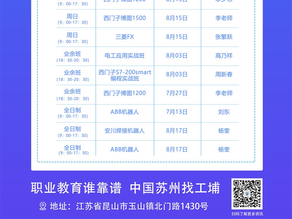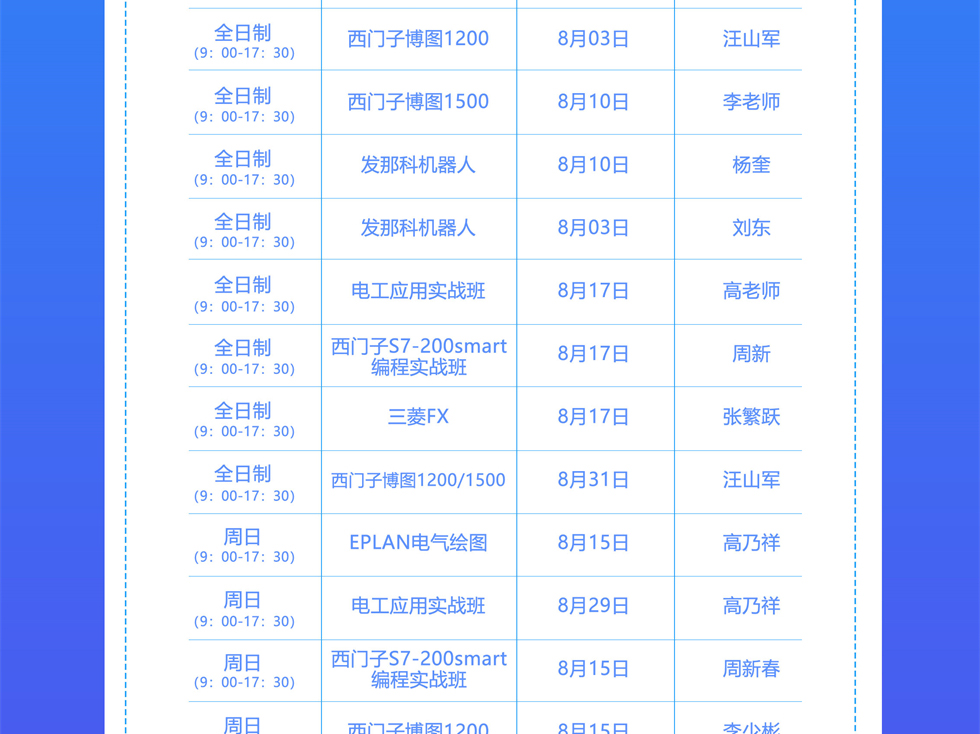 2021年8月自动化开班课表