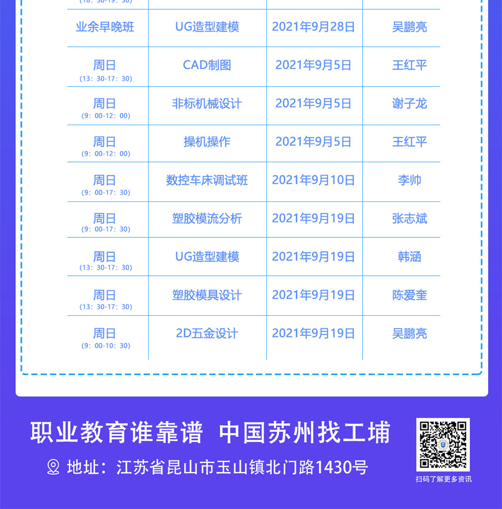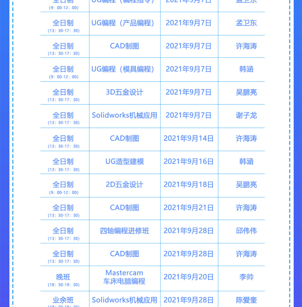 2021年9月模具数控开班课表
