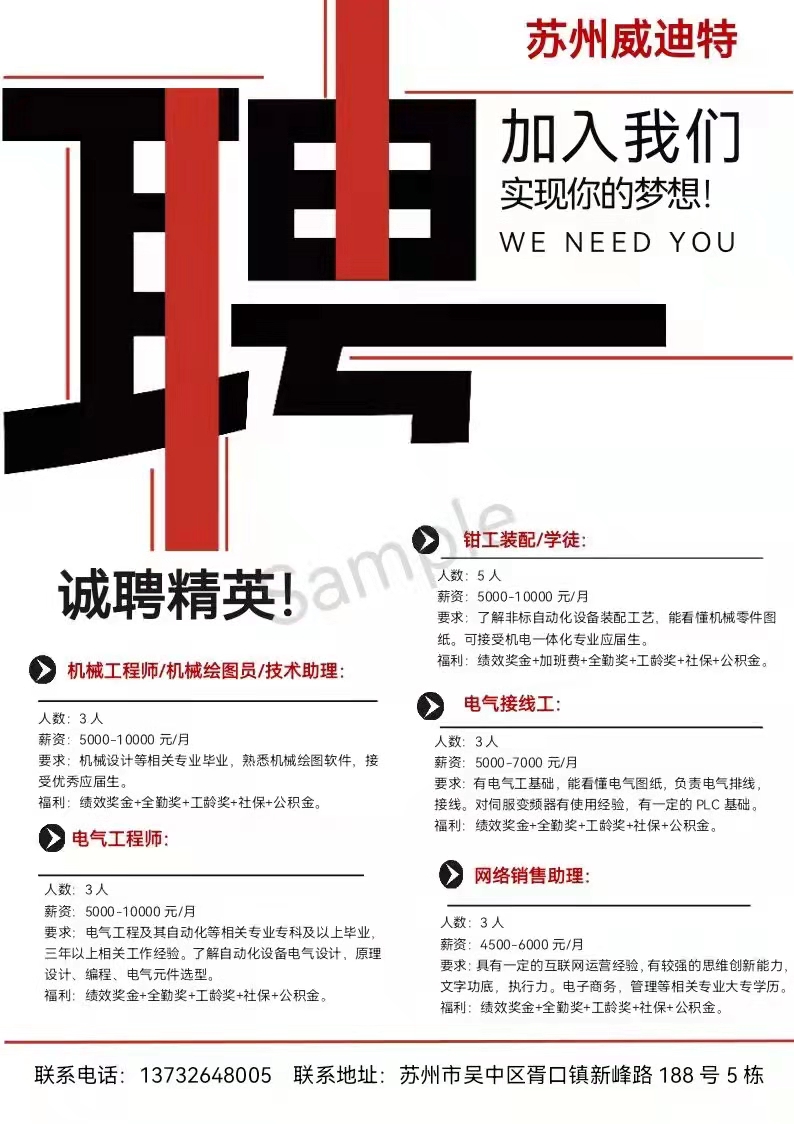 苏州威迪特招聘信息