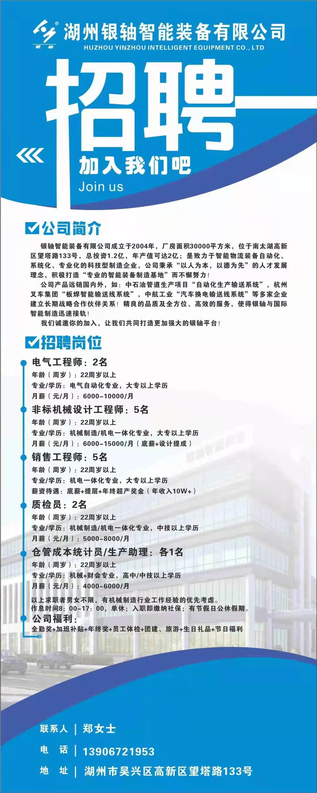 湖州银轴智能装备招聘信息